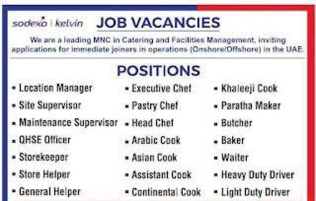 Job Posting: Catering Company - All Positions Available Company Name: kelvin catering company Location: dubai, abudabi Job Type: Full-time Company Overview: kelvin catering company is a dynamic and innovative catering company dedicated to delivering exceptional culinary experiences. We take pride in our commitment to excellence, attention to detail, and passion for creating unforgettable events. We are currently seeking dedicated and talented individuals to join our team and help us in delivering outstanding service to our clients. Job Positions Available: We are hiring for a variety of positions across our company, including but not limited to: Catering Chef: Prepare, cook, and present high-qua...