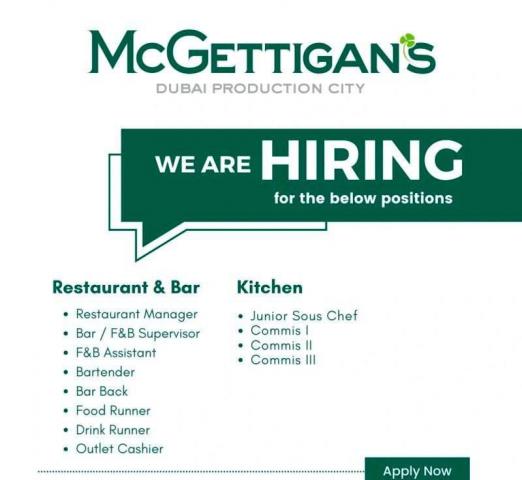Join Our Dynamic Team at Mcgettigans restaurant!